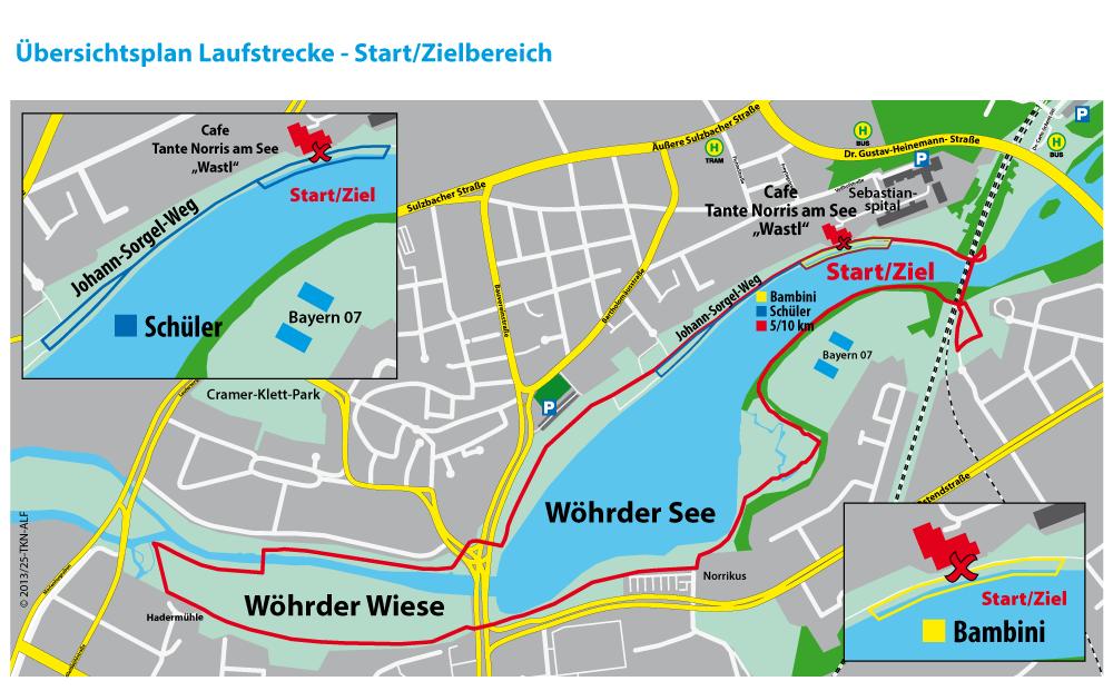 Die Ausgabe der Startunterlagen findet in den Räumlichkeiten des Sebastianspitals statt (Seiteneingang Johann-Soergel-Weg neben dem Café Café Tante Noris am See).